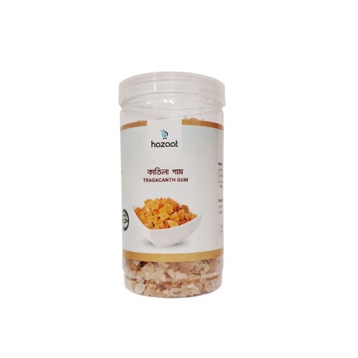 “কাতিলা গাম” (Katila Gum) বা গাম আরবিক নামে পরিচিত এই উপাদানটি একটি প্রাকৃতিক গাছের রেজিন বা আঠা, যা মূলত Acacia senegal বা Acacia seyal গাছ থেকে সংগ্রহ করা হয়। এটি শুকিয়ে শক্ত আকার ধারণ করে এবং পরে খাদ্য, ঔষধ, ও শিল্পকার্যে ব্যবহৃত হয়।