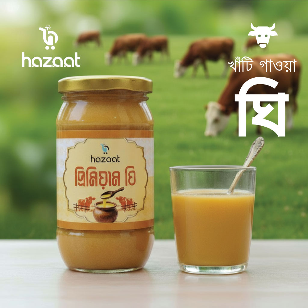 হাজাতের প্রিমিয়াম ঘি !!! নেই কোনো রাসায়নিক বা প্রিজারভেটিভ প্রতিটি ফোঁটায় আছে বাংলার গরুর দুধের আসল ঘ্রাণ ও বিশুদ্ধতার প্রতিশ্রুতি। Hazaat Premium Ghee — আসল ঘ্রাণ, আসল পুষ্টি